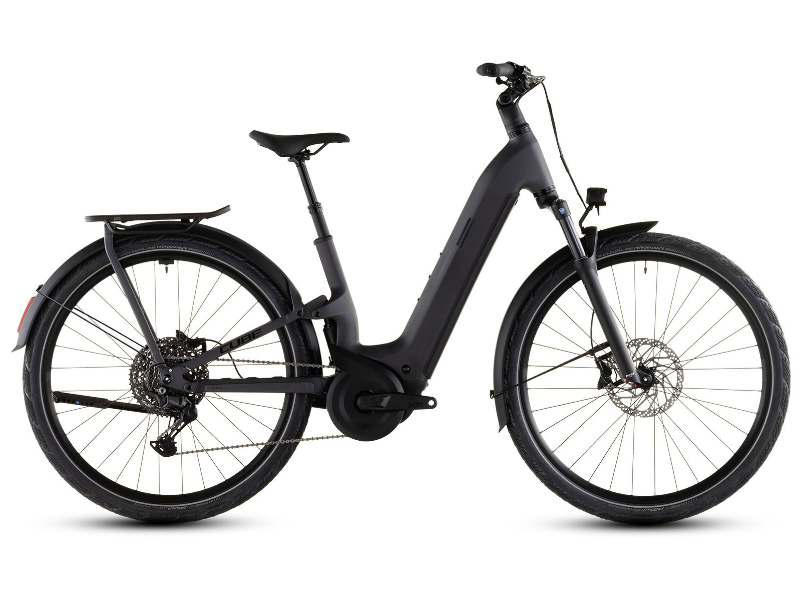 The Cube Kathmandu Hybrid ONE11 HPC Pro 800 is a full-suspension electric trekking bike built for comfort and range. With its Bosch Performance CX motor and integrated 800 Wh battery, it delivers powerful assistance for touring and daily commuting.