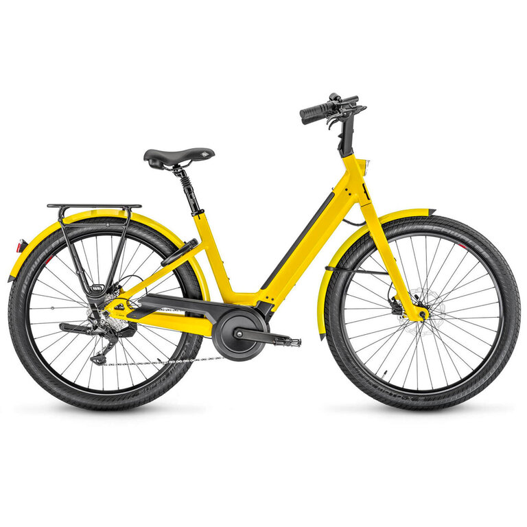 The Shimano Deore 10-speed drivetrain ensures smooth shifting, while the hydraulic disc brakes provide reliable stopping power. Schwalbe Super Moto-X tires offer exceptional grip and comfort on any city road. The integrated suspension seatpost, stable fenders, and Moustache’s premium rear rack with QL3 & MIK HD compatibility make it the ideal bike for commuting or leisure.