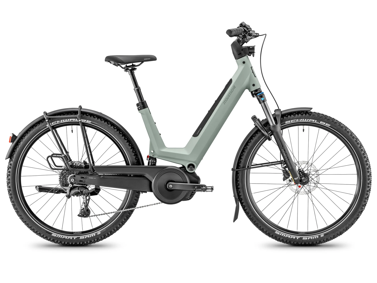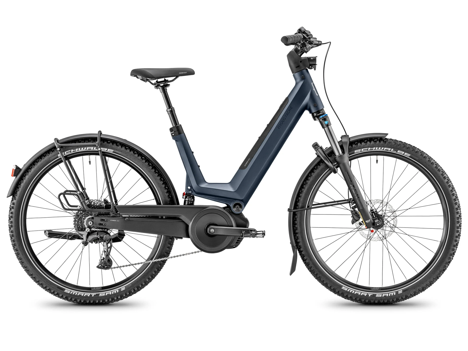 The Moustache Xroad FS 4 is equipped with the latest Bosch Performance Line PX motor, delivering 85-90 Nm of torque for effortless acceleration on hills and headwinds. Paired with the Bosch Purion 200 display and Smart System connectivity, you enjoy intuitive ride control and seamless updates.