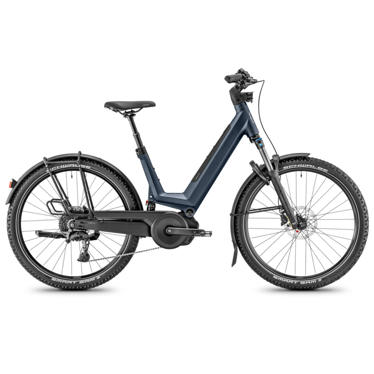 The Xroad FS 4 comes ready to ride with integrated AXA lighting powered by the main battery, sturdy Moustache aluminum fenders, a suspended rear rack with MIK HD platform, a frame-mounted ABUS lock and a telescopic dropper seatpost. Shimano CUES 10-speed drivetrain and hydraulic disc brakes ensure reliable performance in all conditions.