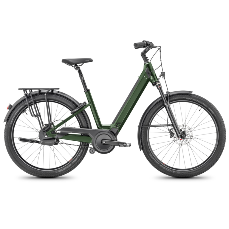 Avec sa fourche suspendue SR Suntour Mobie 25 de 100 mm, sa tige de selle suspendue et ses larges pneus Schwalbe Super Moto-X 27.5", le Mardi 27.6 absorbe les irrégularités de la route pour un confort optimal. Ses freins à disque hydrauliques garantissent un freinage puissant et sécurisé.